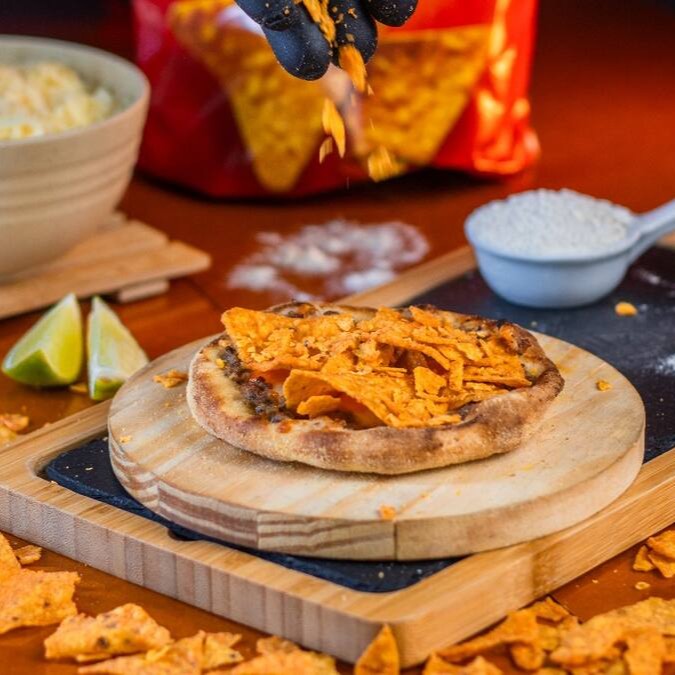 Massa fresca (artesanal), Mussarela, bolonhesa, cheddar e Doritos