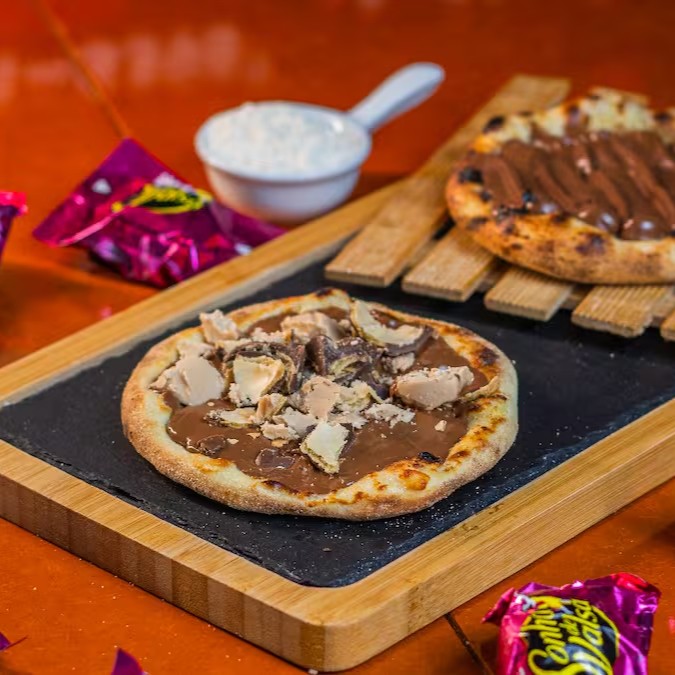 Massa fresca (artesanal),chocolate ao leite ou branco e bombom Sonho de Valsa