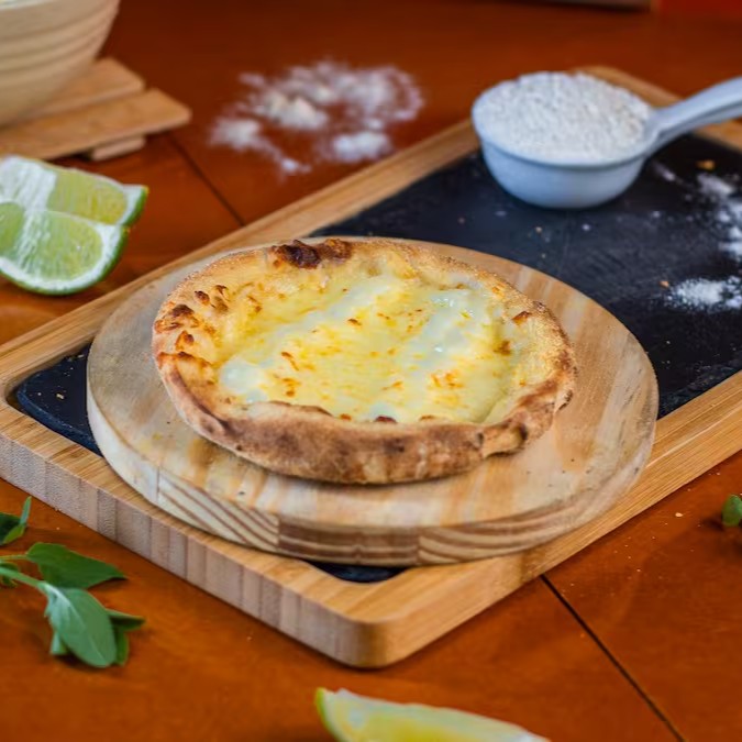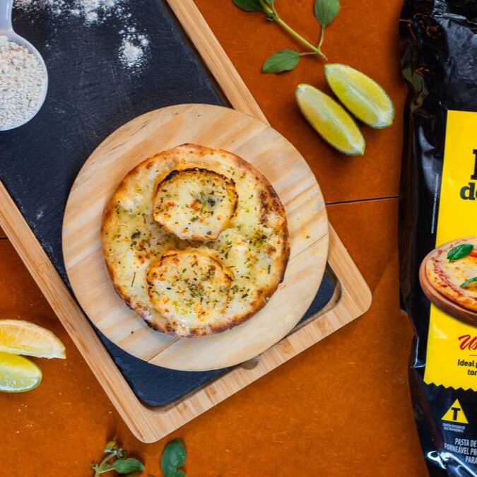 Massa fresca (artesanal) mussarela, pasta de alho e pão de alho