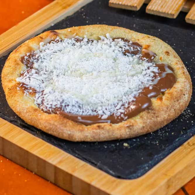 Massa fresca (artesanal), chocolate ao leite, coco ralado e leite condensado