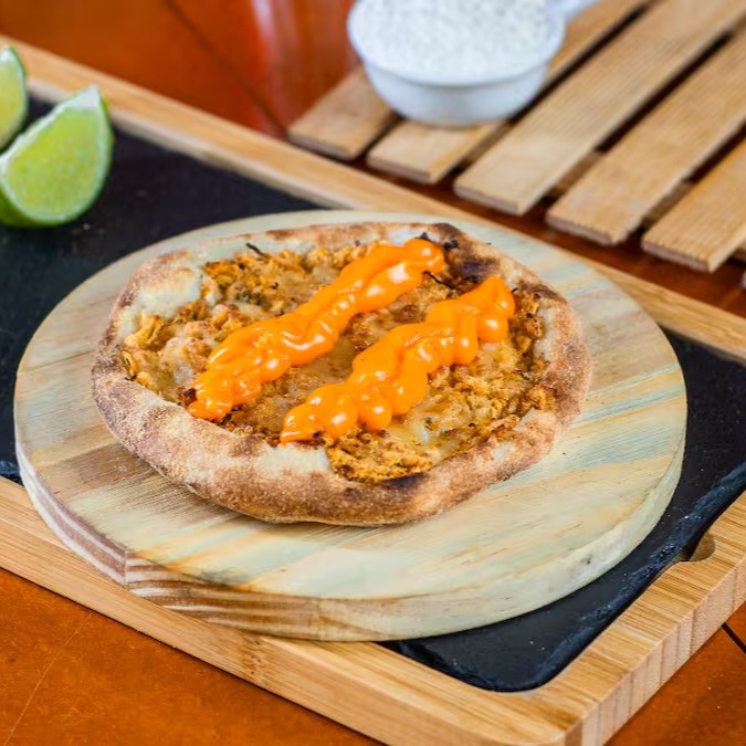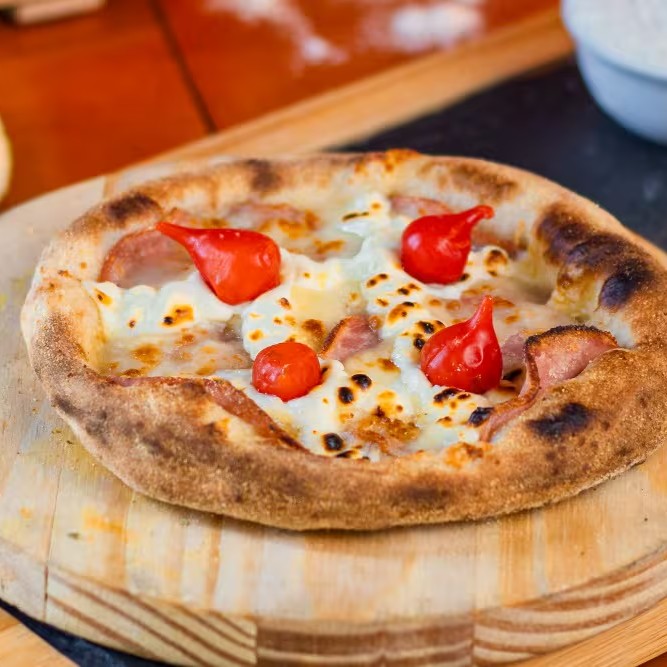 Massa fresca, base de mussarela, lombinho ,cream cheese e pimenta biquinho ( sensacional )