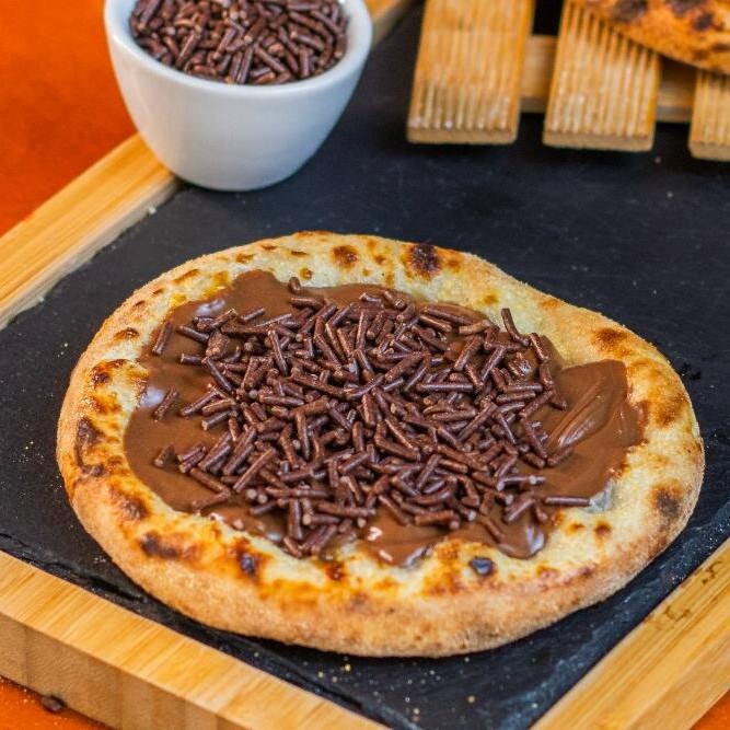 Massa fresca (artesanal), chocolate ao leite e granulado