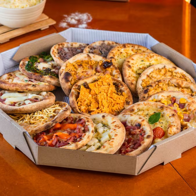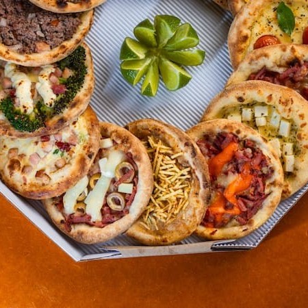 15 esfihas - 6 esfihas tradicionais, 5 Especiais e 4 Premium.