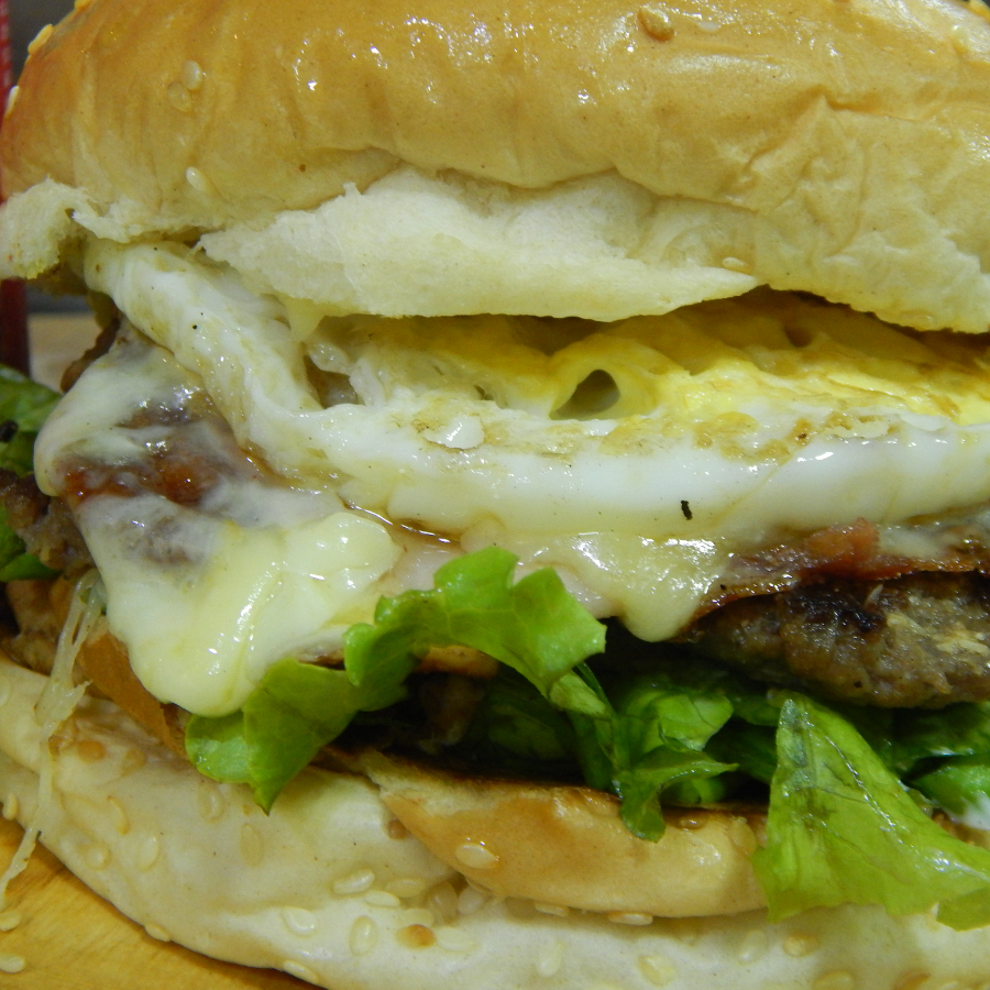 pão brioche selado na chapa, maionese, 2 hamburguer (artesanal), 2 cheddar fatia, ovo, alface, tomate, milho.