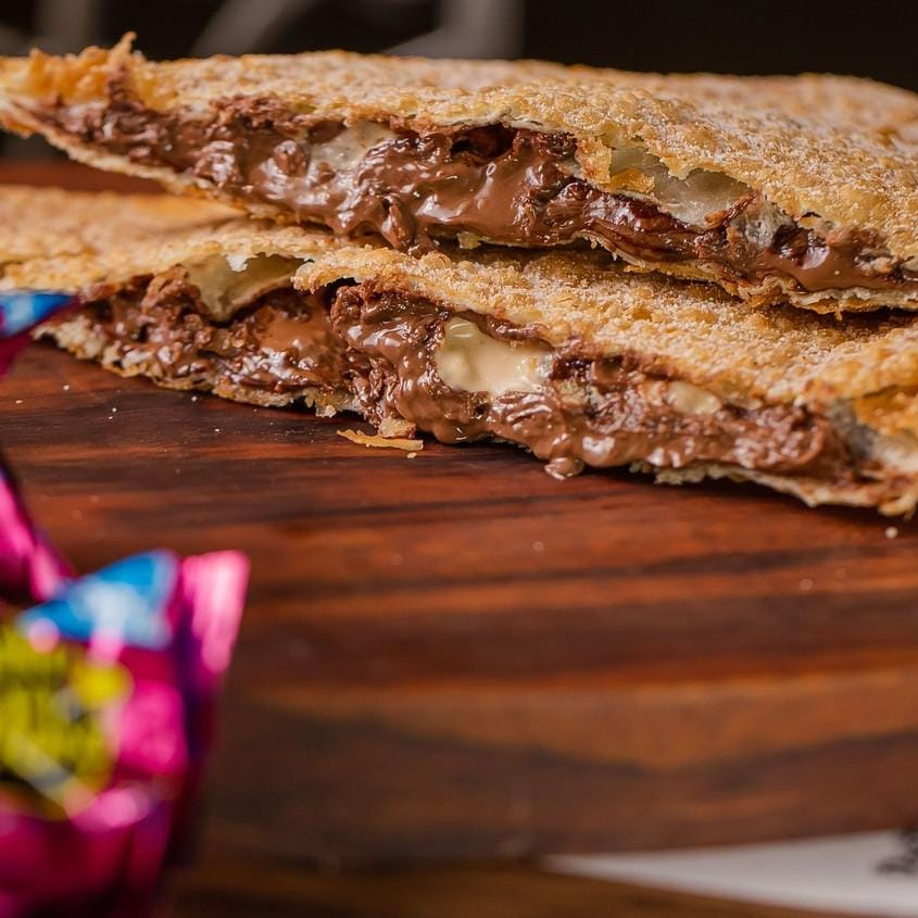 Massa sequinha e crocante 15cm com recheio de banana, chocolate branco, uva passa.
