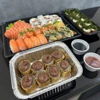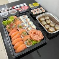 10 hot roll couve | 8 sashimi de salmão | 8 uramaki salmão filadélfia | 5 niguiri de salmão | 5 sushi joe | 4 niguiri skin | 8 hot banana | *NÃO FAZEMOS ALTERAÇÕES*