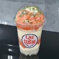 150g de salmão fresco cortado em cubos, arroz japonês e muito cream cheese. *Acompanha molho shoyu e 1 par de hashis*