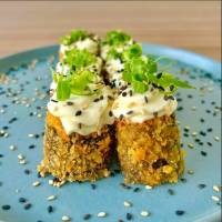 6 unidades - Super crocante, recheado com salmão grelhado misturado com cream cheese e cebolinha. Acompanha maionese especial do chef!