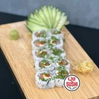 10 unidades - Recheado com arroz, salmão, cream cheese e pepino. Coberto com cebolinha e pimenta siracha!