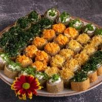 10 Hot Roll com crispy de couve manteiga | 10 Hot Roll com crispy de alho poró | 10 Hot Roll com cream cheese | Acompanha: molho shoyu e molho tarê. |*Não acompanha wasabi e gengibre*