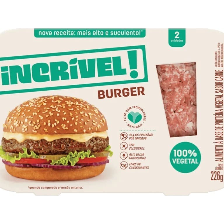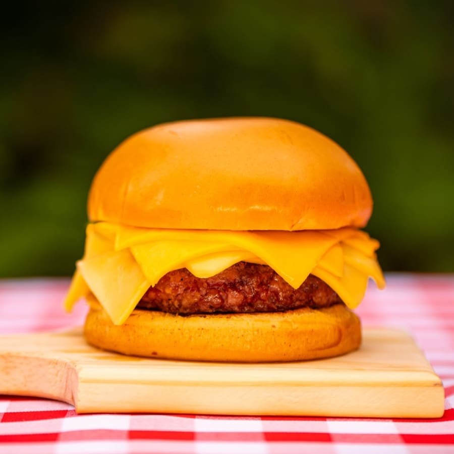 *Este burger demora um pouco mais para o seu preparo completo. Burger de proteína vegetal de ervilha e soja, trigo, sal, cebola e alho. Pão brioche, queijo prato, alface, tomate e cebola roxa