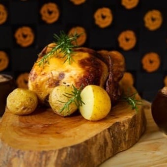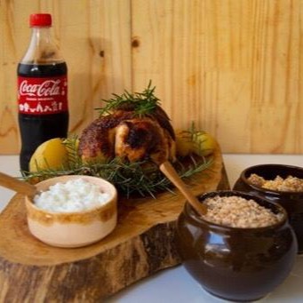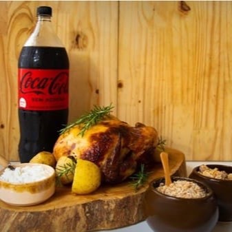 Frango Assado, Porção de Arroz (500gr) Ou Maionese (500gr) * Custo Extra - Porção de Farofa (500gr) à sua escolha: (Vegana Crocante com Proteina de Soja ou Tradicional com Bacon) Porção de molho de alho do Chef. (100ml) Acompanha Refrigerante 2l