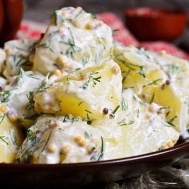 Tradicional salada de batatas com Hellmans, e salsinha.
