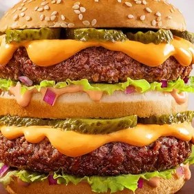 Pão, triplo burger smash de planta (50g cada) com queijo cremoso sabor cheddar, ketchup e picles. 1 é pouco, 2 é bom, mas 3 é surreal! Vai encarar? 100% vegetal! (p... Ver mais