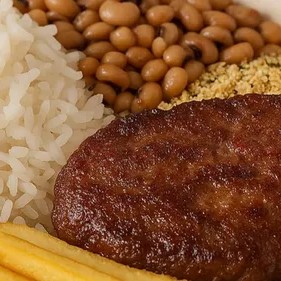 Saboreie nosso 'Pf de Planta!', um prato vegano clássico e saboroso. Esta deliciosa opção contém arroz branco ou integral acompanhados de feijão preto ou carioquinha. Além disso, você pode escolher entre batatas fritas crocantes ou purê cremoso. O destaque fica por conta do nosso hambúrguer (50g) 100% vegetal (proteínas de soja, ervilha e grão de bico), grelhado e suculento. Para finalizar, uma irresistível farofinha temperada para adicionar aquela crocância extra. Um verdadeiro festival de sabores para agradar qualquer paladar!