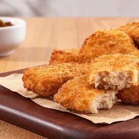 Experimente o sabor crocante e irresistível de nossos nuggets vegetais com sabor a frango. Acompanhados de molhos deliciosos. 100% vegetal!
