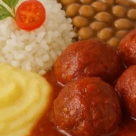 Delicie-se com nossas almôndegas de carne vegetal em um molho de tomate rico, acompanhadas por um purê de batata cremoso, feijão preto ou carioquinha e a opção de arroz branco ou integral. Uma combinação irresistível de sabores reconfortantes e nutritivos!