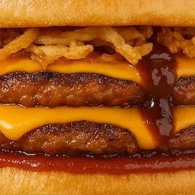 Pão, duplo smash de plantas (55g cada), queijo cremoso sabor cheddar, cebola crispy e molho barbecue. 100% vegetal! (proteínas de soja e ervilha)