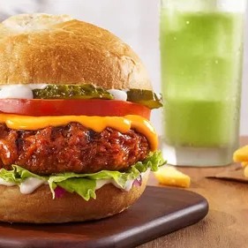 Experimente a perfeição com o The Best Plant Burger in The World, acompanhado de uma porção de dar água na boca e uma bebida refrescante à sua escolha. 100% vegetal, 200% prazer! The Best: Pão crocante assado na hora, 110g do nosso melhor burger de plantas grelhado, delicioso queijo de plantas cremoso sabor cheddar, cebola roxa picada, picles, alface e tomate frescos e maionese.