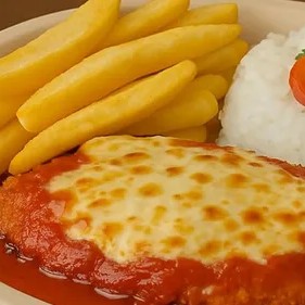 Experimente a nossa deliciosa Parmegiana 100% vegetal, com frango vegetal empanado, queijo mussarela vegana suave, e acompanhamentos de arroz, batata frita e um toque de orégano, em uma homenagem aos sabores tradicionais italianos. Uma combinação de sabores 100% vegetais que proporcionam uma experiência de prazer e satisfação sem culpa!