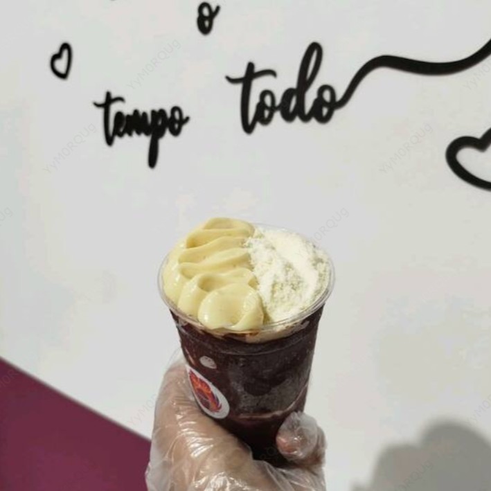 Essa opção deliciosa é composta por açaí e cupuaçu juntamente e nela também vão 2 camadas de complementos ( Primeira camada no meio e a segunda no topo do copo)