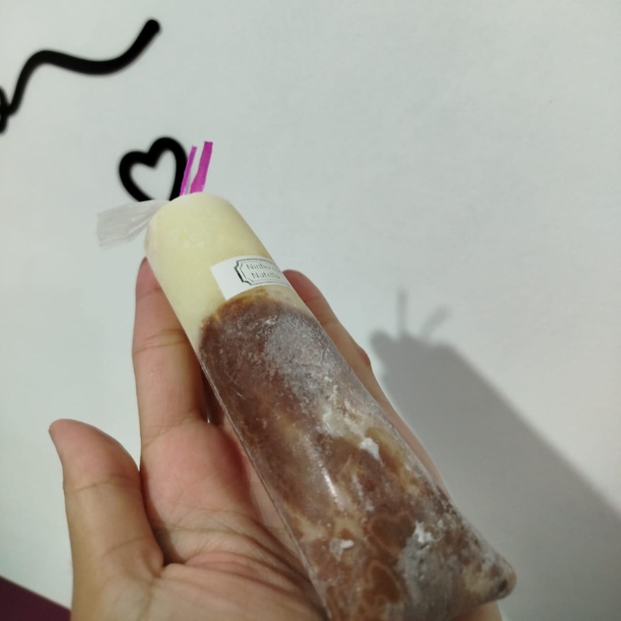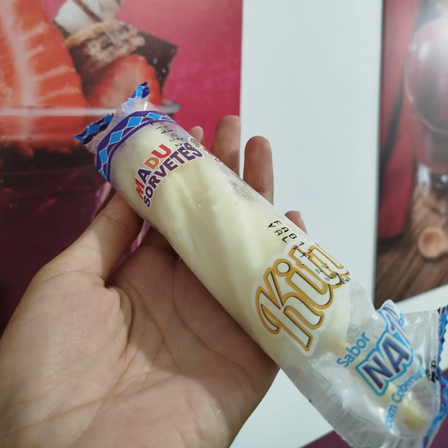 Delicioso sorvete sabor Nata com casquinha de chocolate branco
