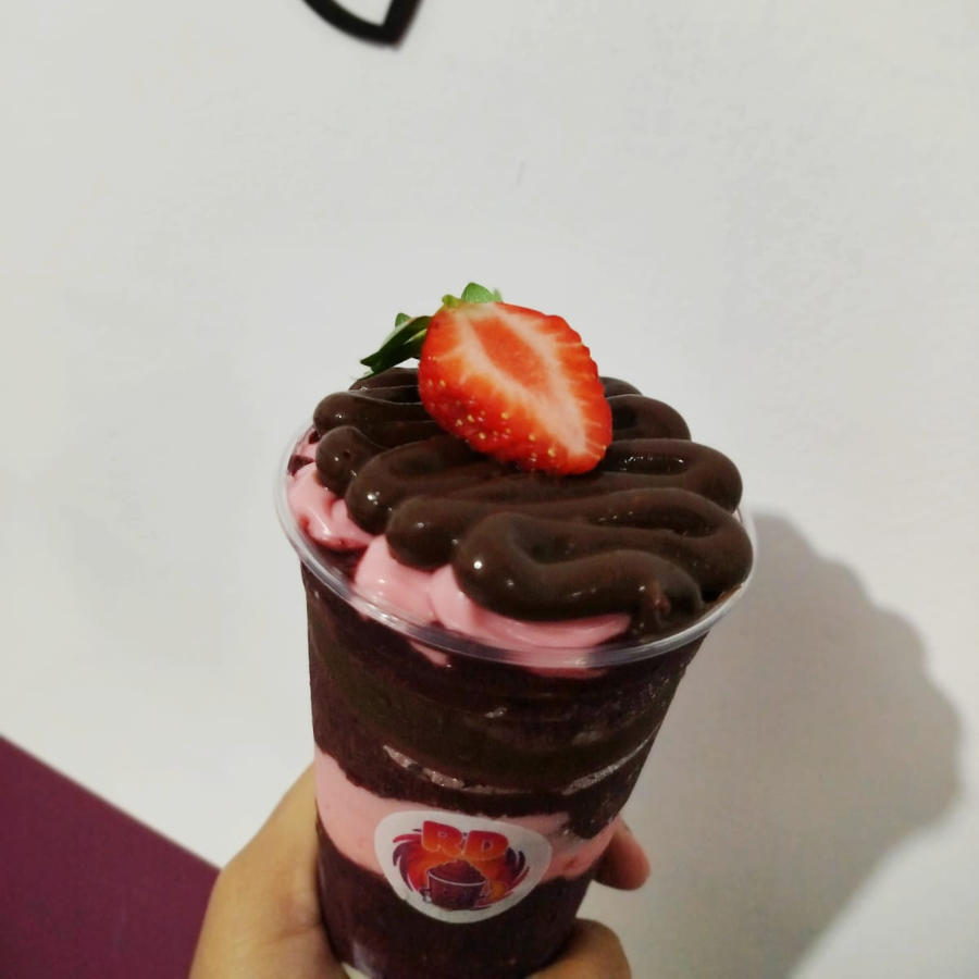 Essa opção deliciosa é composta por 2 camadas de complementos ( Primeira camada no meio e a segunda no topo do copo)