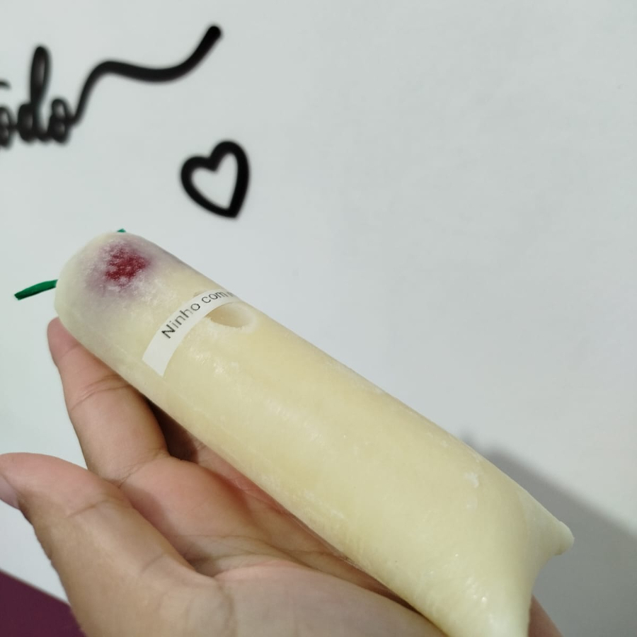 Delicioso geladinho caseiro de ninho com pedaços da fruta morango