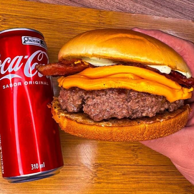 pão de brioche, hamburguer de 120g, queijo cheddar cremoso, bacon e maionese da casa