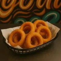 pão de brioche, 2x smash de 80g, queijo chedda, 3 aneis de cebola embanada e molho barbecue.