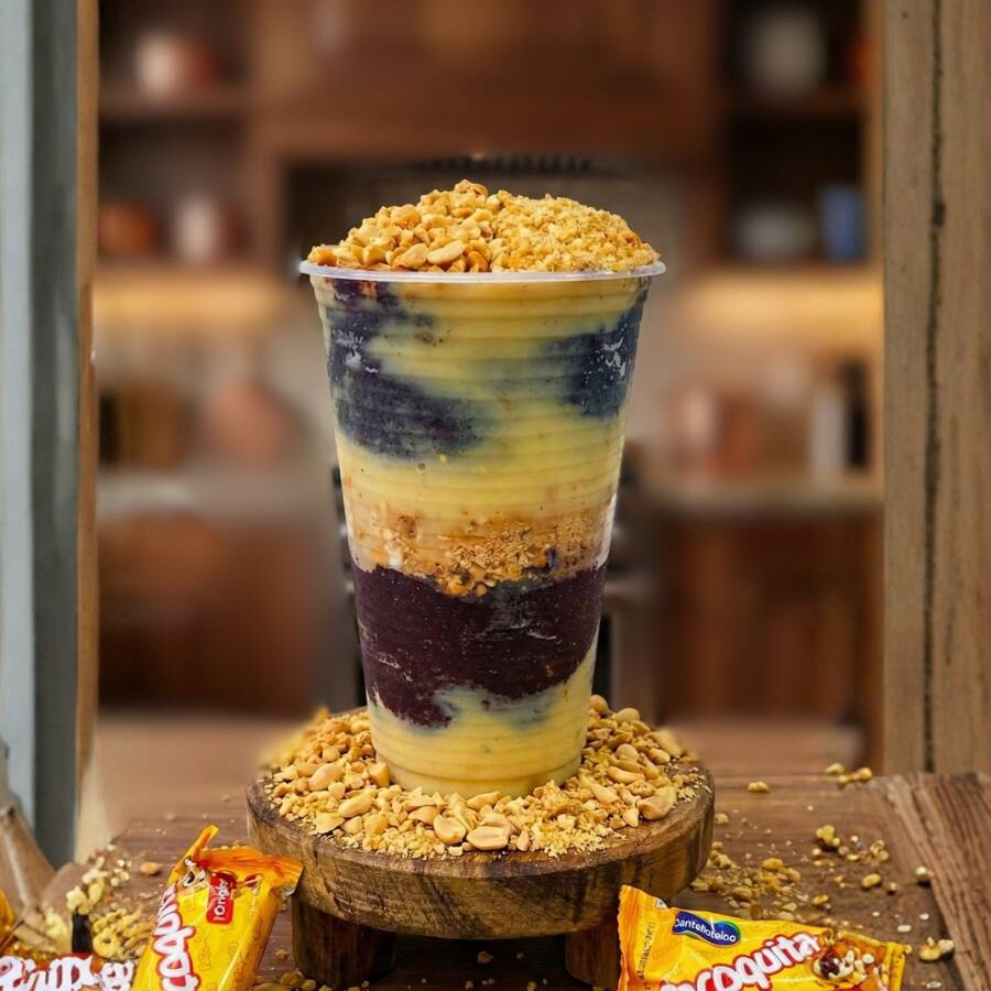 Açaí, Leite Condensado, paçoca Moída, Amendoim Triturado