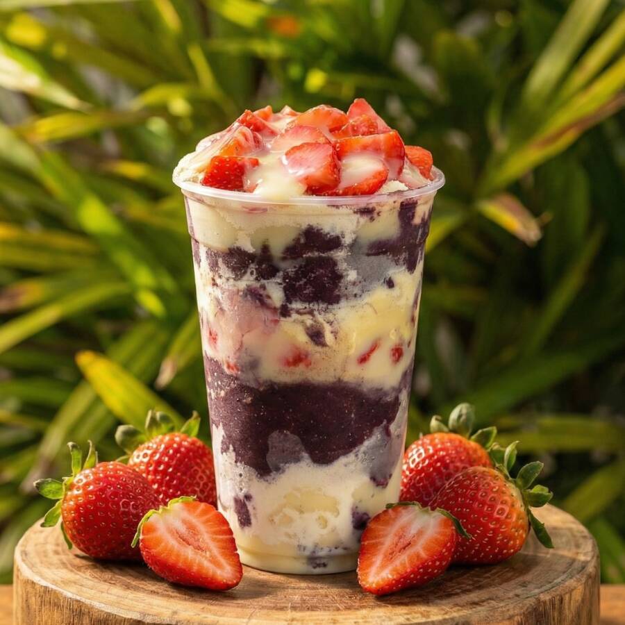 Copo Açaí Com Morango Leite Em Pó E Leite Condensado