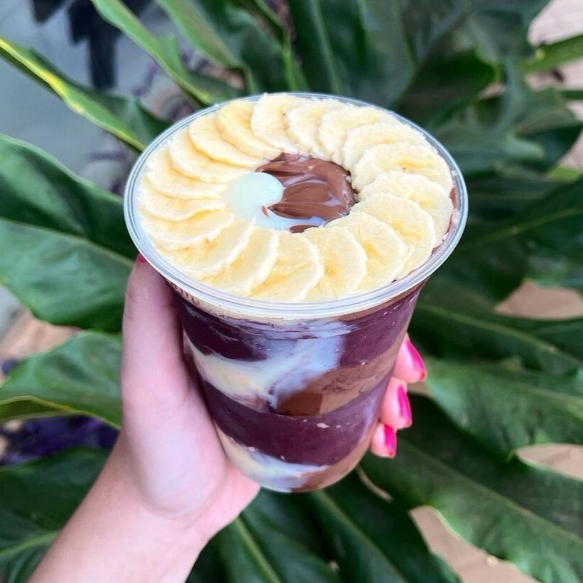 Açaí cremoso combinado com creme de avelã, fatias de banana fresquinha, leite condensado e aquele toque especial de leite em pó. Uma mistura perfeita de sabor e textura, doce na medida certa!