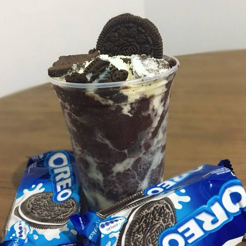 “Cremoso e irresistível! Camadas de açaí geladinho combinadas com pedaços crocantes de Oreo, leite condensado e leite em pó. Uma explosão de sabor que vai conquistar os amantes de biscoito com chocolate!”