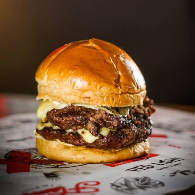 O novo e Sensacional smash burger da Red Light. Ele contém;