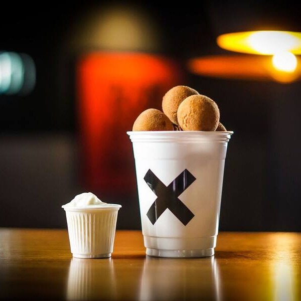 8 bolinhos de carne bovina, temperados, empanados e fritos.