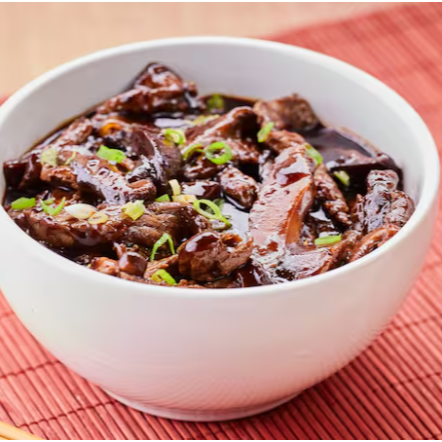 Macias fatias de carne combinadas com cogumelos salteados, realçadas por um molho oriental encorpado que ressalta o sabor dos ingredientes.
