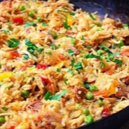 Arroz,frango desfiado,cheirro verde,milho,ervilha,loro,extrato tomate,oregano.