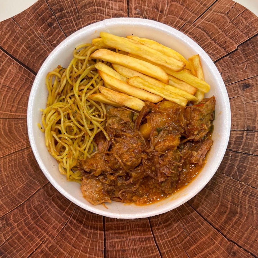 Deliciosa marmitex de carne de panela que desmancha na boca feita com molho artesanal acompanhada de arroz soltinho e feijão preto.