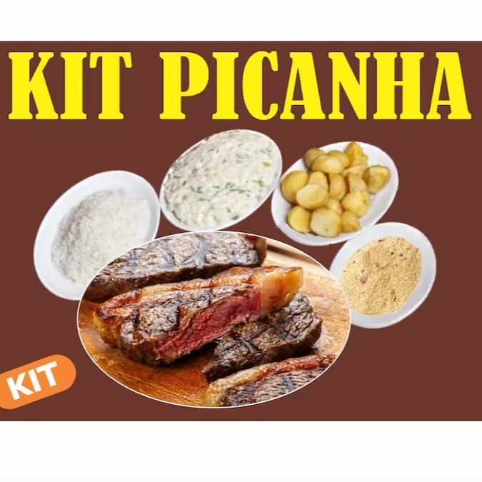 Surpreenda-se com o nosso 'Kit Picanha Completa (peso in natura)'. Um primoroso corte de picanha, cuidadosamente grelhado na brasa, que promete uma experiência culinária inigualável. Acompanha um arroz soltinho e bem temperado, uma farofa de mandioca crocante e extremamente saborosa, uma maionese caseira fresquinha e uma batata rústica irresistivelmente dourada. Ideal para um churrasco em família inesquecível. Imagem meramente ilustrativa.