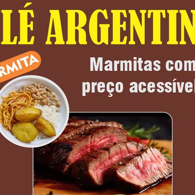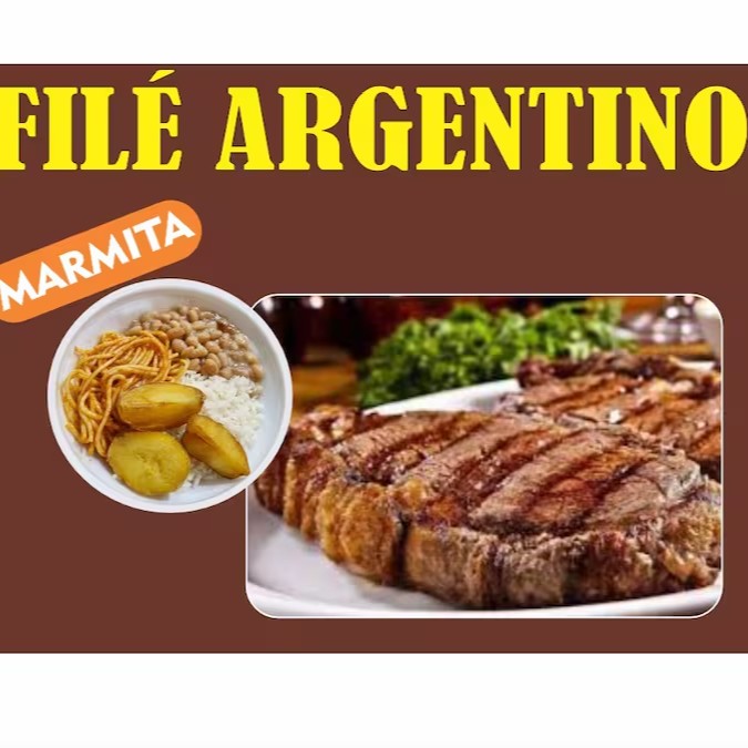 Filé argentino de verdade, carne macia e suculenta + arroz, batata rústica, salada e (feijão) opcional.