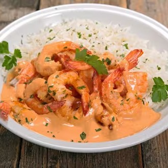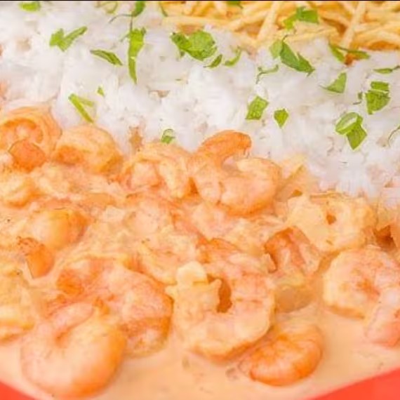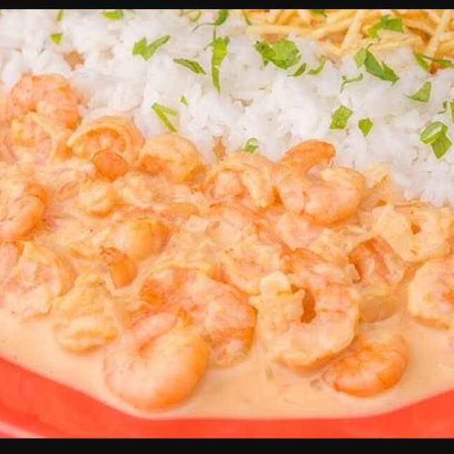 Delicioso estrogonofe de camarão... Acompanha arroz e batata palha.