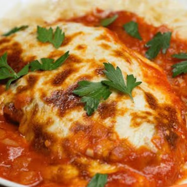 Delicioso parmegiana de frango....com um molho delicioso e queijo mussarela... Acompanha arroz e batata palha.