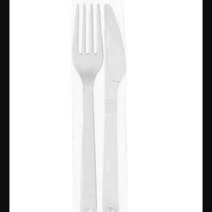 Faca e garfo descartável de boa qualidade.