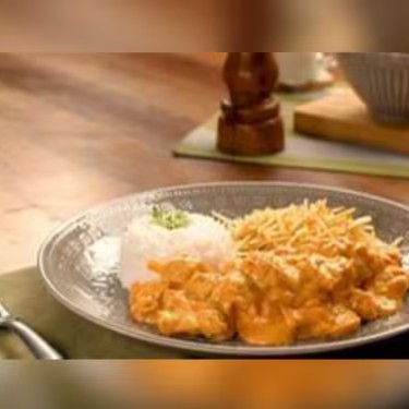 Delicioso estrogonofe de frango...e acompanha arroz e batata palha...