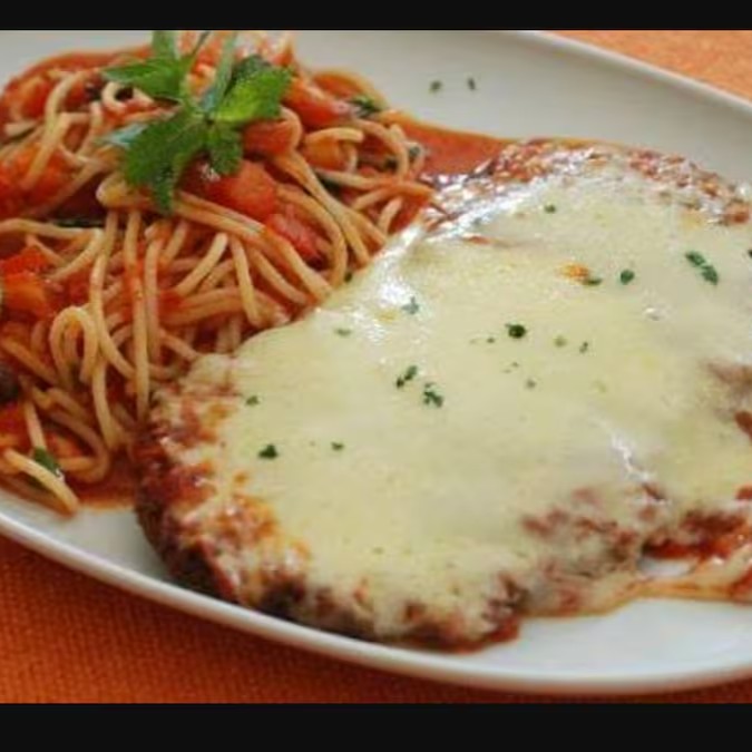 Parmegiana De Carne Mais Espaguete Molho Branco