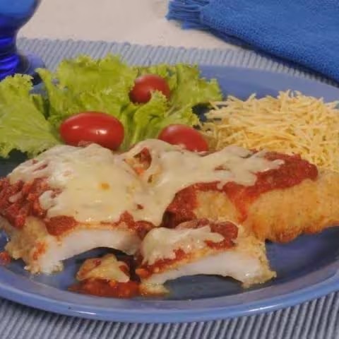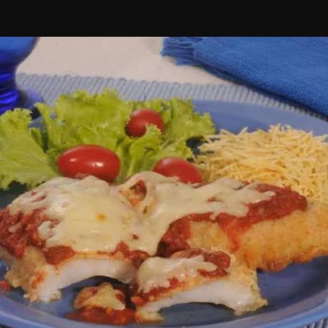 Delicioso parmegiana com peixe fresquinho empanado...molho especial e queijo de muita qualidade... Acompanha arroz... Feijão e batata palha
