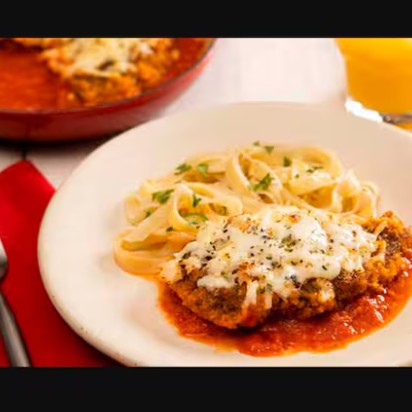 Parmegiana De Frango Mais Espaguete Molho Branco
