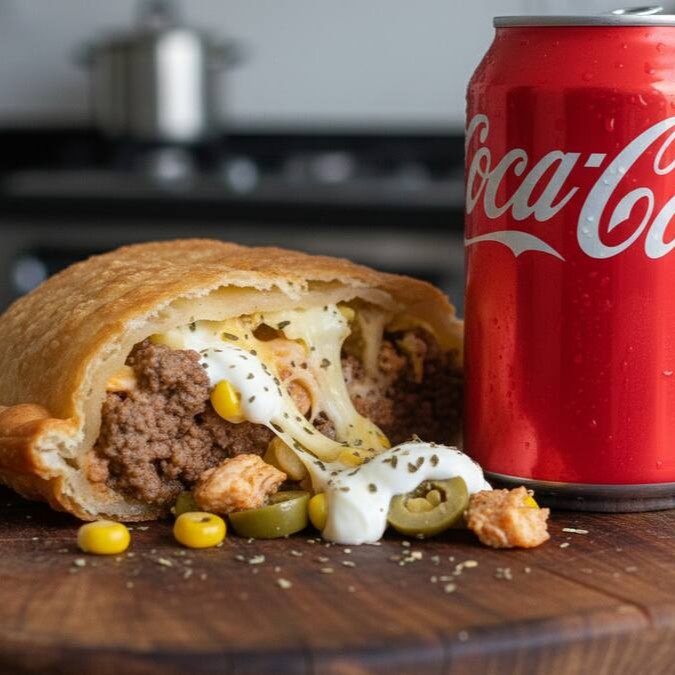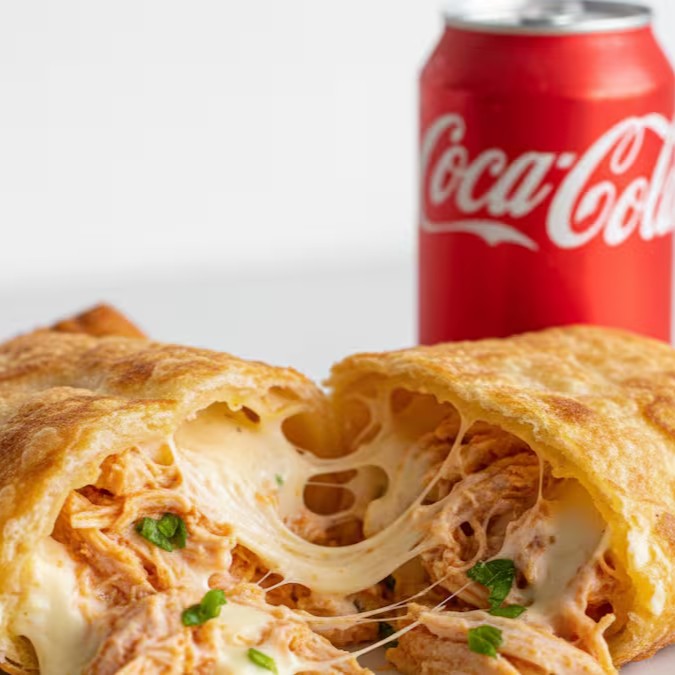 Pastel de frango cremoso bem recheado + Coca-Cola 350ml. Uma opção prática, saborosa e com ótimo custo-benefício pra matar a fome sem pesar o bolso.