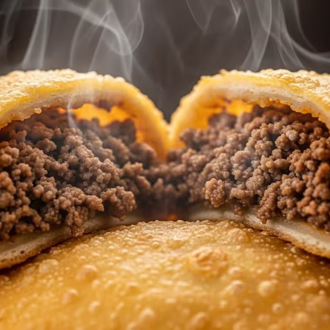 Pastel recheado com uma mistura de carne e queijo, temperado com especiarias, envolto em uma massa crocante e dourada. Uma combinação irresistível.